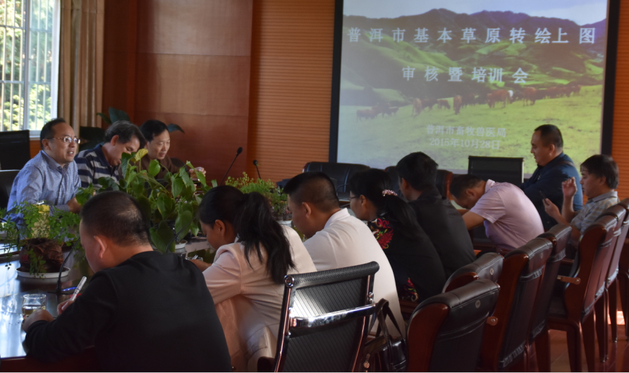 2015年10月,普洱市舉辦了基本草原轉(zhuǎn)繪上圖和數(shù)據(jù)建庫項目審核培訓(xùn)工作會。云南省農(nóng)業(yè)廳草原監(jiān)督管理站的尹副站長、闕老師、蔣老師等專家,和市農(nóng)業(yè)(畜牧獸醫(yī))局的專家,共同組成專家驗收組,對項目逐項進行審核,各縣局的分管領(lǐng)導(dǎo)、縣飼草飼料站站長、業(yè)務(wù)技術(shù)骨干及市級相關(guān)人員參會。項目通過了省、市級審核,仍有坡度、放牧季節(jié)、割草地面積以及某些縣的氣溫降水等問題需要修改和調(diào)整。審核會后,公司技術(shù)人員為參會人員深入淺出地講解了Arcgis。學(xué)會軟件后,工作人員可以對基本草原上圖成果進行編輯、瀏覽、查詢、統(tǒng)計等操作。 |